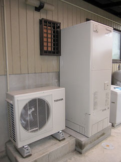 エコキュートは、大気の熱を利用してお湯を沸かす、地球環境への負荷をおさえた自然冷媒(CO2)ヒートポンプ給湯機です。